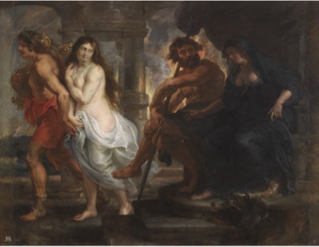 La pintura de Rubens se basa en uno de los mitos más conmovedores de la tradición clásica. Orfeo, hijo de Apolo y Calíope, desciende al inframundo para recuperar a Eurídice. Gracias a su música logra conmover a Hades y Perséfone, quienes le permiten llevársela con una condición: no mirarla hasta haber salido completamente del reino de los muertos. Incapaz de resistirse, Orfeo se vuelve antes de tiempo y la pierde para siempre.
